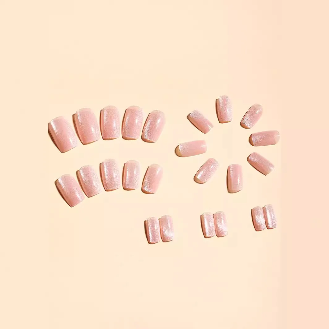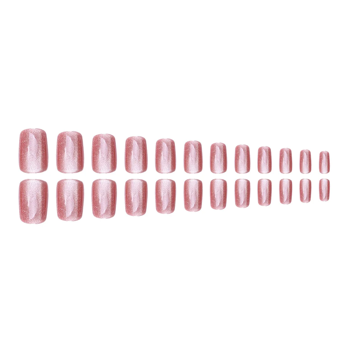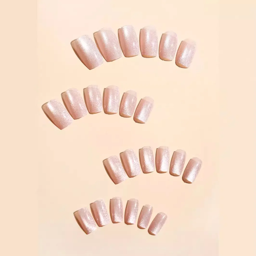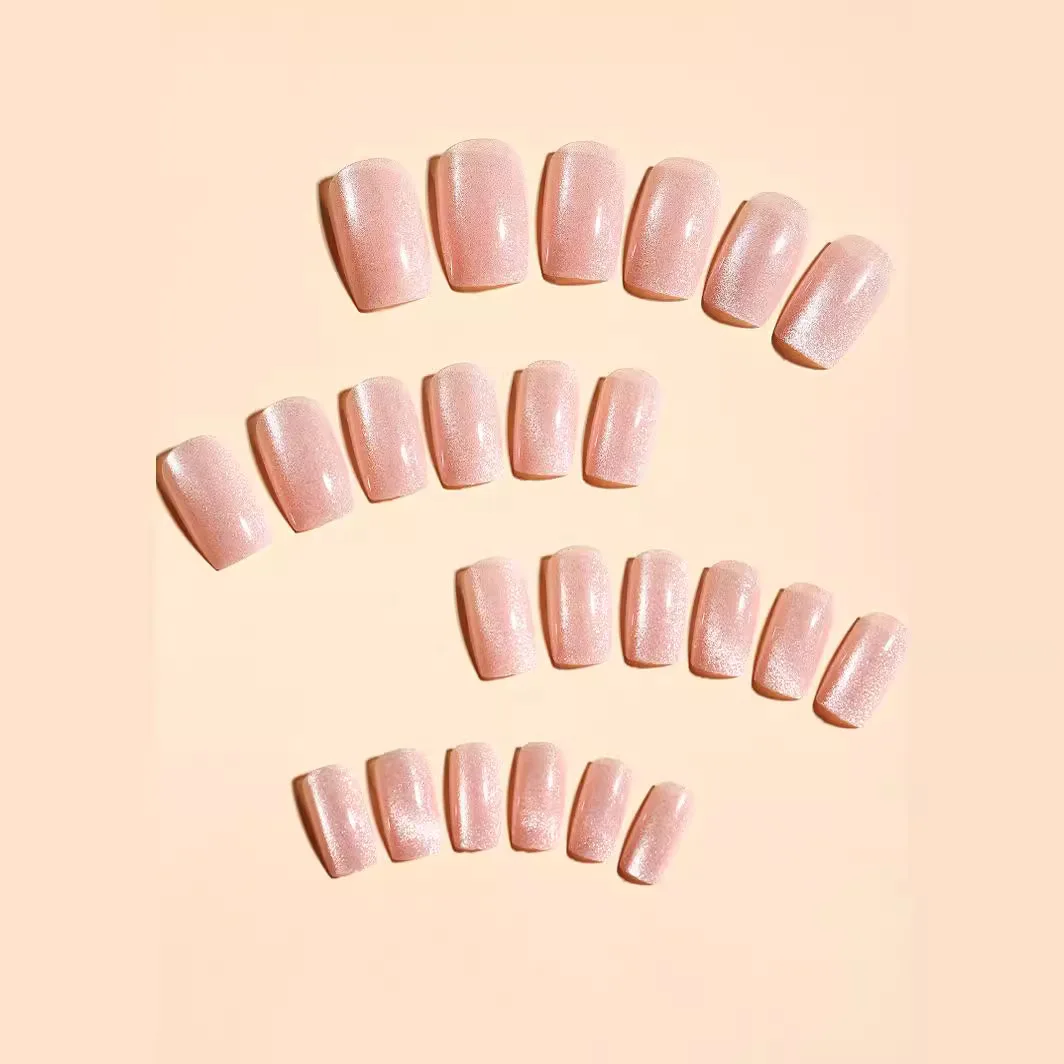 24Pcs Cat Eye Glitter Press-On Nails - Short Square Faux Ongles in Pink, Green, Purple, Yellow & Nude
