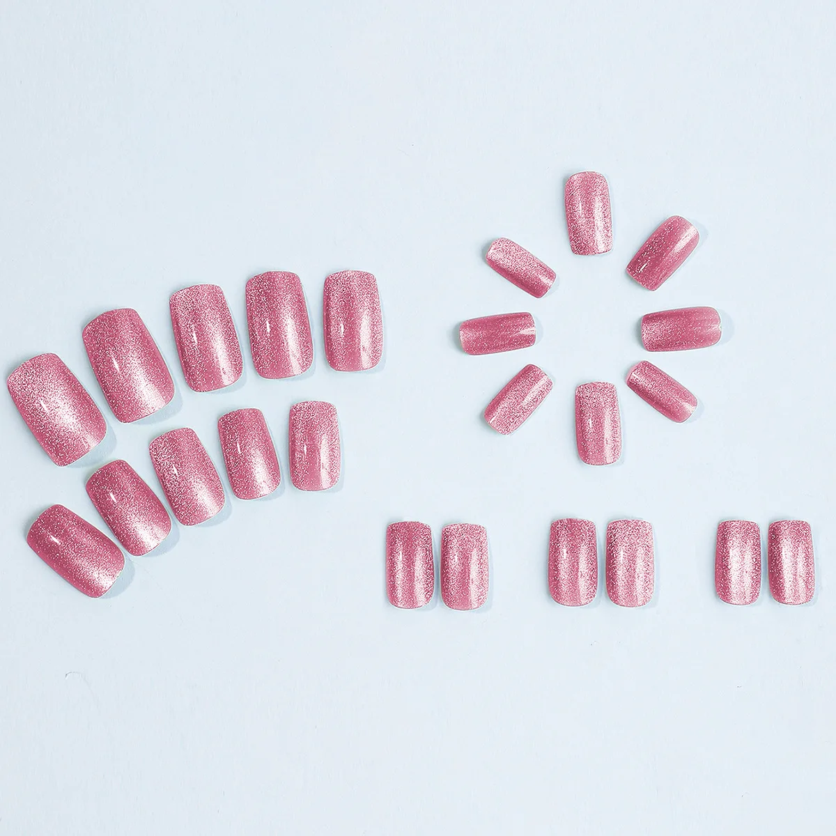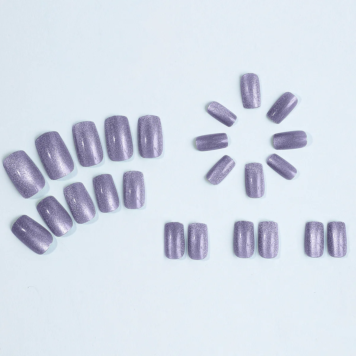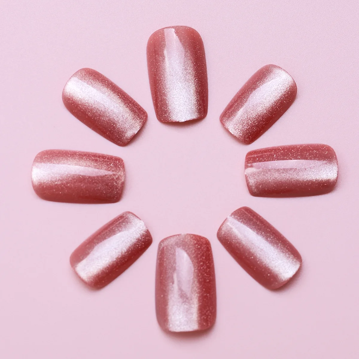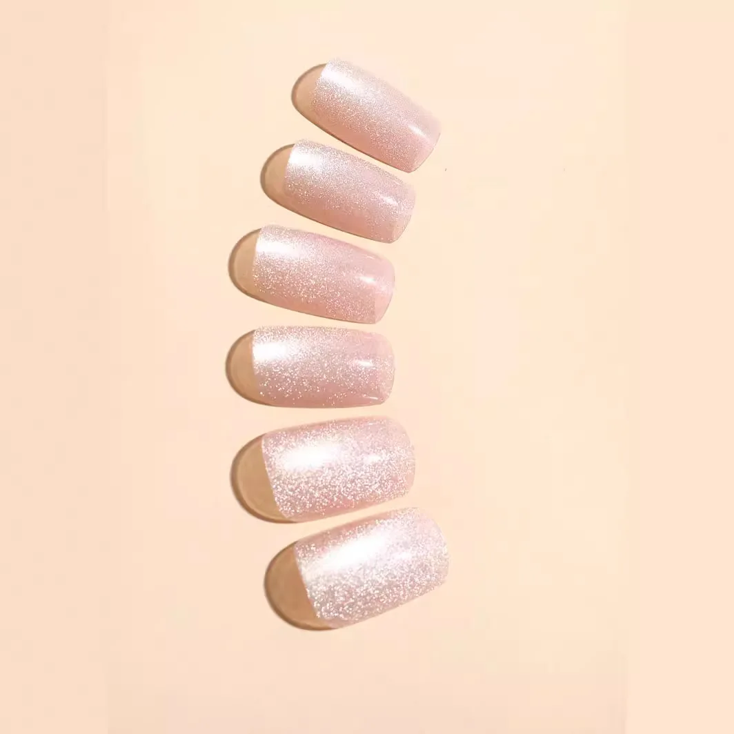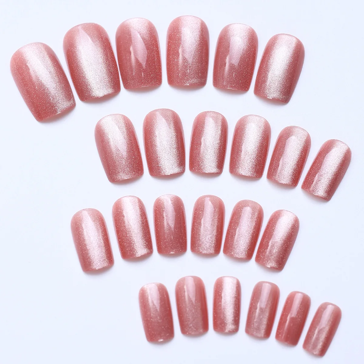 24Pcs Cat Eye Glitter Press-On Nails - Short Square Faux Ongles in Pink, Green, Purple, Yellow & Nude
