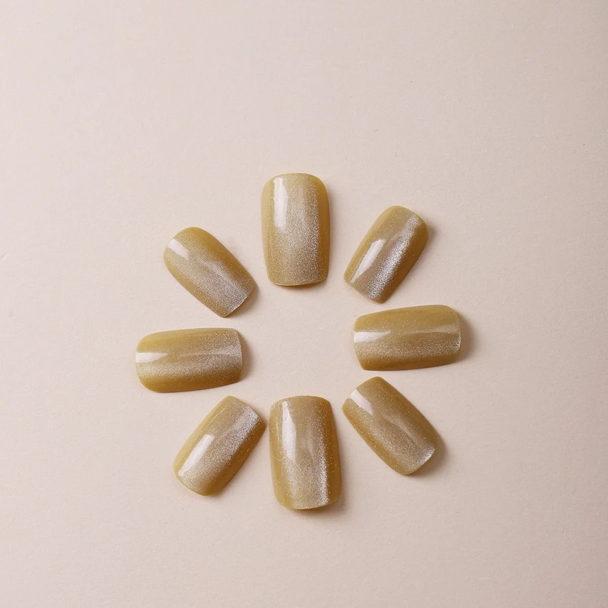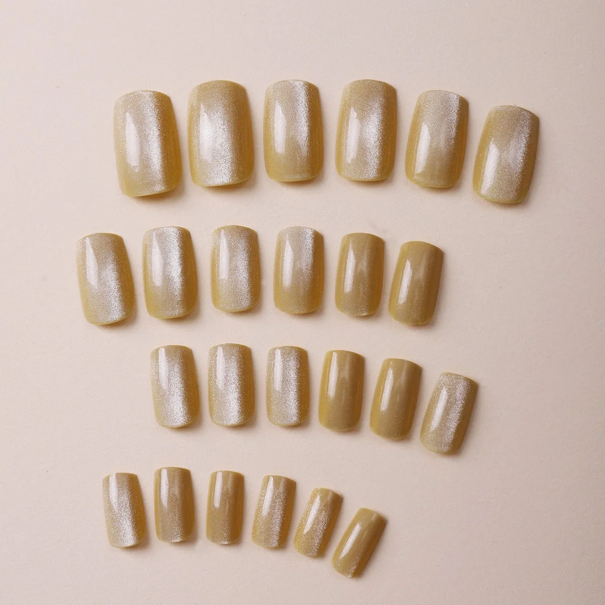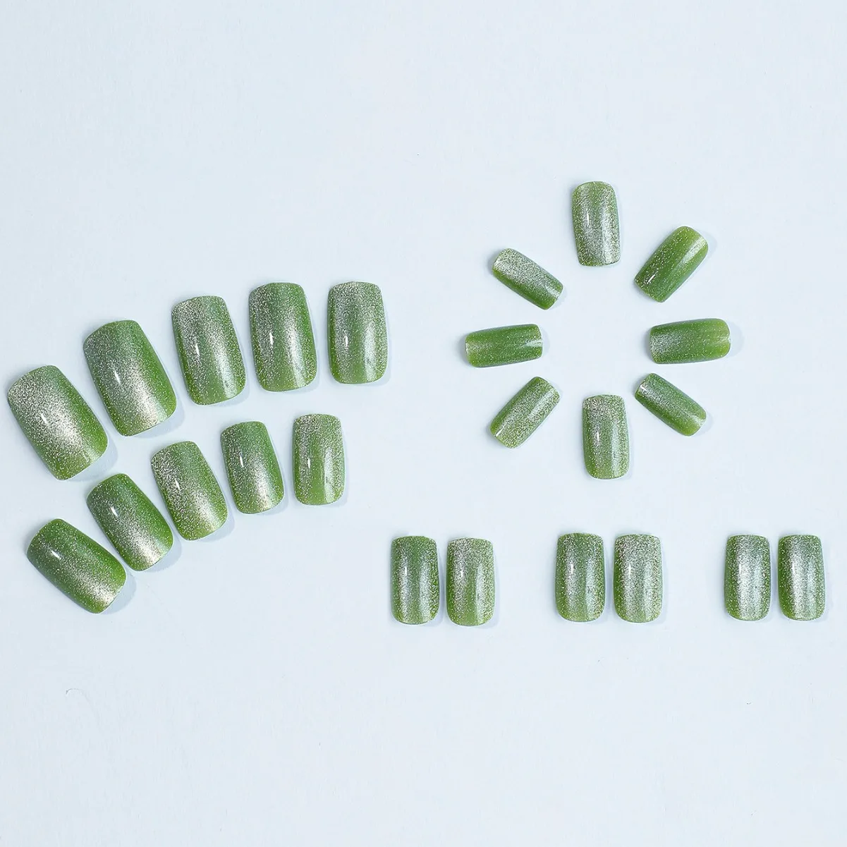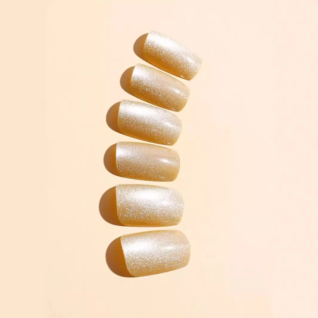 24Pcs Cat Eye Glitter Press-On Nails - Short Square Faux Ongles in Pink, Green, Purple, Yellow & Nude