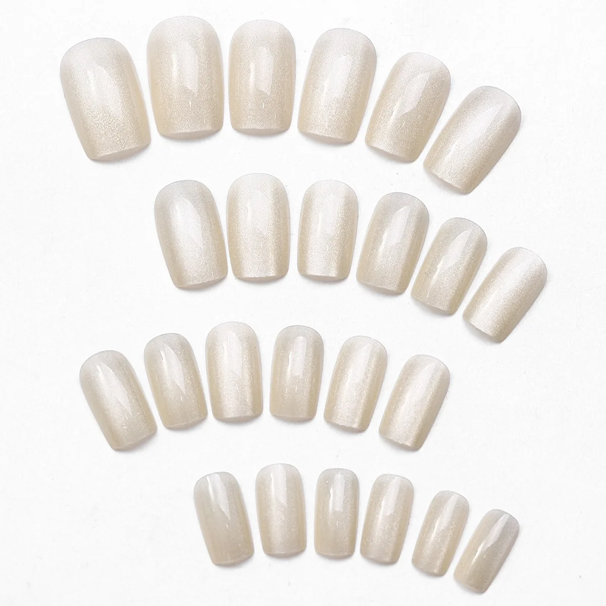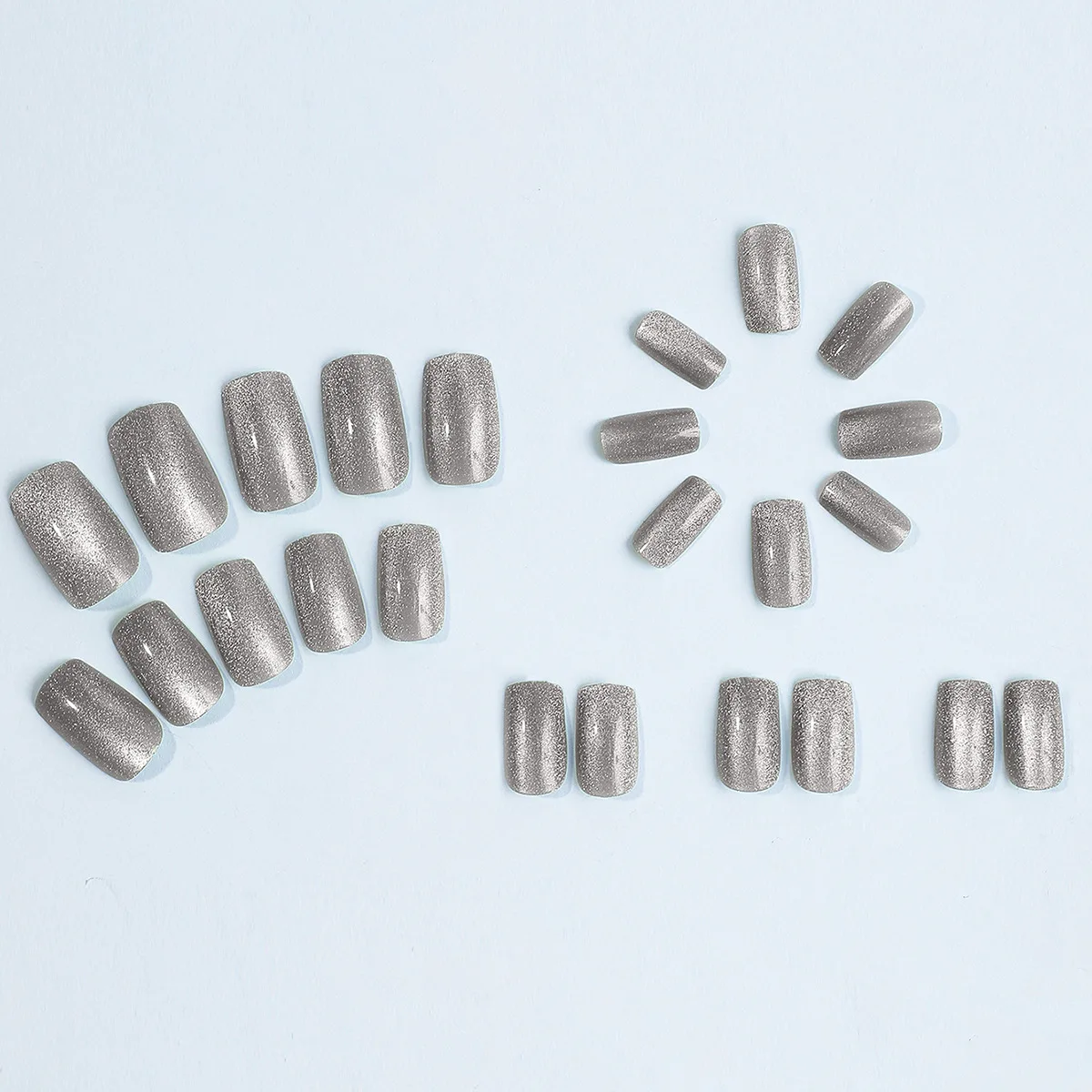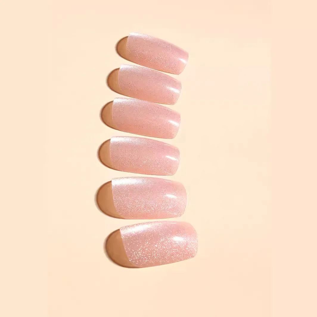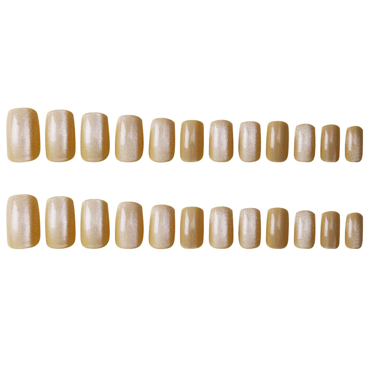 24Pcs Cat Eye Glitter Press-On Nails - Short Square Faux Ongles in Pink, Green, Purple, Yellow & Nude