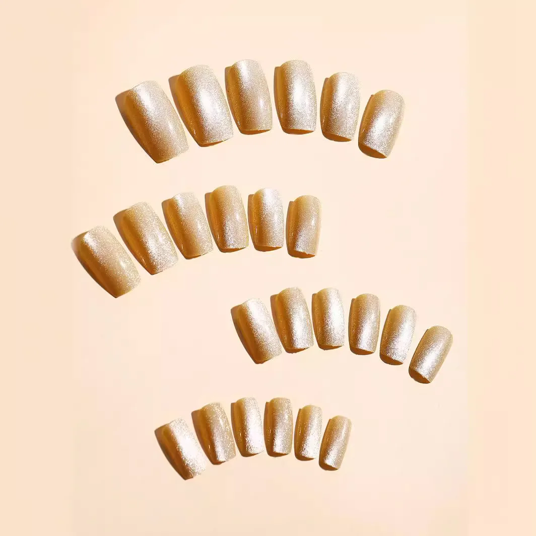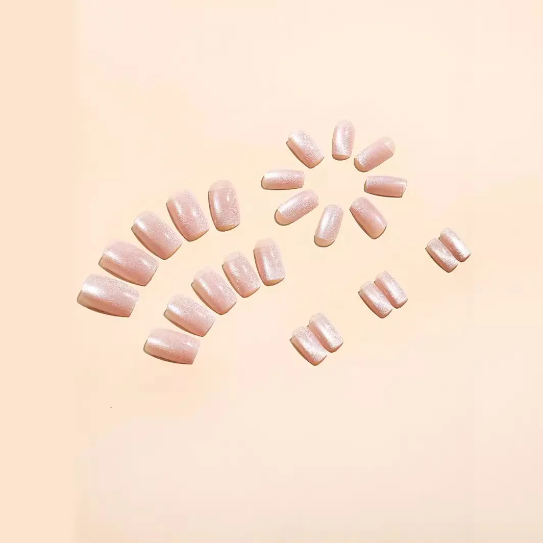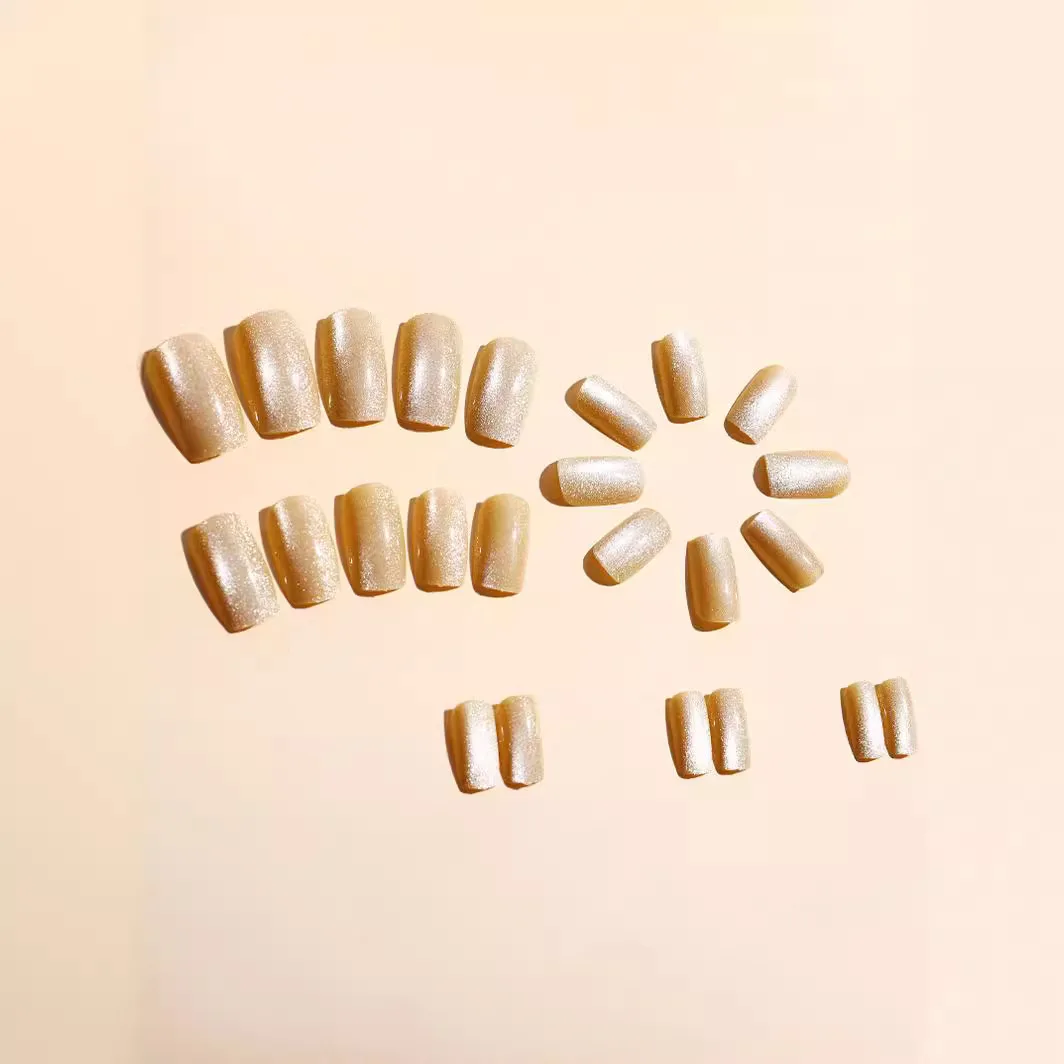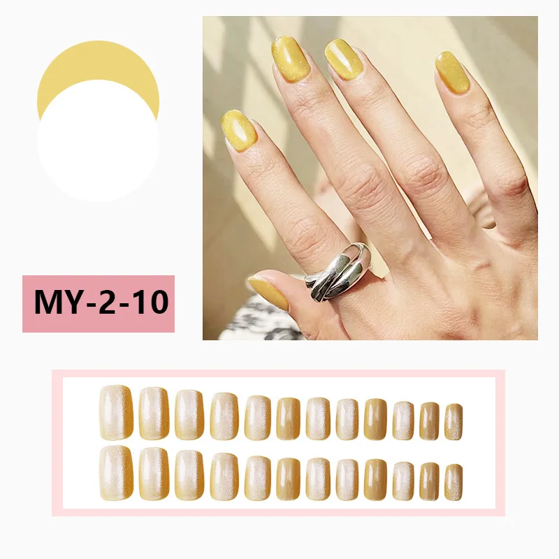 24pcs/set short square fake nails cat eyes glitter pink green purple yellow nude nail tips faux ongles press on false nail art